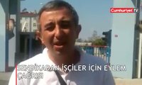 Gazete çalışanları gazetenin önüne oturarak Kuran-ı Kerim okudu. Haber http://www.haberler.com/yerel-gazetelerden-baretli-eylem-sendikadan-giyabi-6034833-haberi/