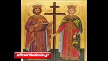 Τοῦ Σταυροῦ σου τὸν τύπον ἐν οὐρανῷ θεασάμενος, καὶ ὡς ὁ Παῦλος τὴν κλῆσιν οὐκ ἐξ ἀνθρώπων δεξάμενος, ὁ ἐν βασιλεῦσιν, Ἀπόστολός σου Κύριε, Βασιλεύουσαν πόλιν τῇ χειρὶ σου παρέθετο· ἣν περίσωζε διὰ παντὸς ἐν εἰρήνη, πρεσβείαις τῆς Θεοτόκου, μόνε Φιλάνθρωπε.
