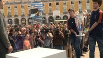 La expedición del Atlético de Madrid, encabezada por un sonriente Diego Costa, llegó este viernes al hotel Tiara Park Atlantic de Lisboa recibido por decenas de aficionados que entonaron el himno del club y vitorearon al entrenador argentino Diego Simeone.