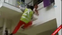 Annesi uyuyunca balkonun açık bırakılan kapısından çıkarak aşağıya sarkan çocuk yürekleri ağza getirdi.