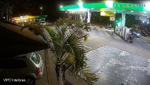Homem Acende isqueiro e provoca acidente em posto de gasolina