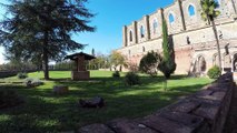 Amandola, comune di 3709 abitanti nella zona dei Monti Sibillini, provincia di Fermo, Marche, Italia. L’abbazia dei santi Ruffino e Vitale si trova lungo la sponda destra del fiume Tenna. Il Ferranti (1891) afferma che in un documento del 20 luglio 1267 i signori di Monte Pasillo (località adiacente a Comunanza), vendendo al comune di Amandola 180 famiglie con il castello ed il monte di Marnacchia, vollero mantenere intatti i diritti che il monastero aveva su tali beni. Dieci anni dopo tale situazione si ripeteva per i beni venduti dai signori De Smerillo. Queste considerazioni hanno suggerito al Crocetti (1995) che questo monastero fosse di giuspatronato della famiglia di Monte Passillo imparentata tra l’altro con i De Smerillo. Non esiste documentazione antecedente a quella riportata dal Ferranti se non per congiunzioni artistiche rilevate nel tempio ipogeo, grotta, o come riportato da Piva (2003) nella cripta di una primitiva chiesa sulle cui fondazioni è stato successivamente costruito l’attuale complesso risalente all’epoca romanica. E’ questo un ambiente primitivo, coperto a botte e scavato nel tufo la cui unica apertura è costituita da una finestrina posta nella zona absidale. Sulle sue pareti è scritta una delle pagine artistiche più antiche della regione che viene messa in relazione con l’analogo percorso liturgico della cripta di S.Vincenzo al Volturno (824-842): una lunga teoria di santi in parte identificati dal nome a grandezza quasi naturale e con il palmo delle mani rivolto verso gli astanti incedono al centro dell’absidiola, ossia verso la mano benedicente della divinità intersecandosi con l’altro percorso ortogonale al precedente indirizzato, ma le condizioni delle immagini ne rendono difficile la lettura, verso un arcangelo inscritto in un clipeo (Piva, 2003) come nella già citata cripta di S.Vincenzo. L’assenza del monastero nell’elenco dei possedimenti menzionati nella concessione in enfiteusi del 977 farebbe supporre una datazione intorno all’XI secolo (Piva, 2003). Si discosta da tale ipotesi la Romano (1994) che esprime invece una datazione più tarda, vicino alla metà del XII secolo, in ragione delle caratteristiche di accentuato geometrismo della decorazione affiancate “ad una tendenza alle proporzioni allungate”. La soprastante chiesa romanica si articola in tre navate distinte da colonne di cui la centrale è ricoperta da capriate e le laterali in origine da crociere. Un alto presbiterio è accessibile mediante una scalinata centrale, mentre ai lati due aperture conducono alla cripta sottostante. Questa è caratterizzata da cinque navatelle di cui quelle laterali più ampie con volte a crociera sostenute da tozze colonne terminanti con pulvino decorato a foglie angolari. Nell’abside centrale si trova un contenitore con i resti umani di quello che la tradizione vuole sia S.Ruffino. Nel prospetto est è ancora visibile lo stemma del comune di Amandola. Galleria di immagini con fotografie scattate venerdì 30 maggio 2014.