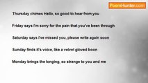 A heavy weight pressing down on my shoulders Head hanging, limp hands, shallow breaths, Tired eyes that stare at nothing Numb to touch Numb to feel Numb to hopeBeth Baileyhttp://www.poemhunter.com/poem/in-grief-of-jody/