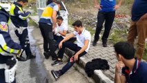 Konya'da moto0sikletiyle minibüse arkadan çarpan 19 yaşındaki Vahit Türk, kaskının fırlaması sonucu başını yere çarpıp yaralandı.