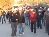 Bursa'nın Yenişehir İlçesi'nde bin işçi, greve başlayarak eş ve çocukları ile yürüdü.7 aylık Esila Altun da bebek arabasında annesi ile birlikte eyleme katılarak, babasına destek verdi.