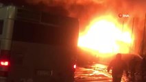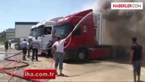 Mersin'de bir tır garajında çıkan yangında, park halindeki 4 tır alev alev yandı.