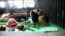 The first giant panda cub born in Taiwan celebrates her first birthday with a special cake. Duration: 01:02
