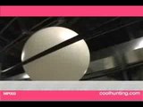 L'installation de Jeppe Hein s'anime lorsque les visiteurs entrent et offre un ballet de balles blanches sur un circuit semblable à des montagnes russes.