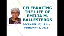 A slideshow of Grandma Liling (Emilia Macaraeg Ballesteros) (Dec 17, 1911 - Feb 03, 2013) Her memories and timeline of her life. RIP we will miss you.