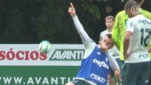 Felipe Menezes fez um belo gol no coletivo em campo reduzido com times mistos, no treino desta quinta-feira, na Academia de Futebol