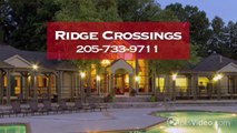 Ridge Crossings Apartments for rent in Hoover, AL on ForRent.com: (866) 518-9529 - http://www.forrent.com/apartment-community-profile/999921904.php Availability, pricing and special promotions subject to change daily. Ridge Crossing Apartment Homes have incredible 1, 2, and 3 Bedroom Homes in Hoover, AL! Our apartments have been newly renovated and appointed with two-toned modern paint colors, oil-rubbed bronzed lighting throughout, 2" blinds, black on black appliance packages, mahoganey trimmed mirrors, incredible storage space and are available with sunrooms and wood-burning fireplaces. Our community offers a Movie Theater with Luxury Theater seating, Racquetball Court, State-of-the-Art 24 Hour Fitness Center, two beautiful swimming pools with large lounging decks and incredible stone fountain, lighted tennis courts and a Cyber Cafe with Free Wi-Fi, Brand-New Playground, Picnic Area, Rover Retreat, and Rec Field. We are zoned for the award winning Hoover School system -Deer Valley Elementary School, Bumpus Middle School and Hoover High School and only minutes to everything - Riverchase Galleria Mall, Food, Fun, I-459 and only 20 minutes from downtown, Hoover Recreation Center, Hoover Aquatic Center and Aldridge Gardens. - 100 Tree Crossings Pkwy