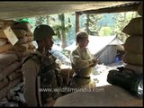 Indian para-military, CRP, police and army personnel on duty at the Amarnath Yatra pilgrimage route in Jammu and Kashmir state, India. A security frisking / screening takes place for all those embarking on the pilgrimage or entering camps where there is high security.