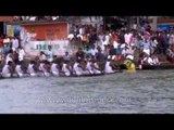 Boatmen in full action, during the Champakulam boat race at Alleppey, Kerala.