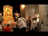 Buddhist monk chanting prayers at Sarnath in Varanasi, Uttar Pradesh, India.