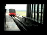Taking the Airport Express from Terminal 1 to Terminal 2 of Kuala Lumpur Airport, Malaysia.