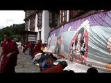Monks folding the Thangkha displayed at Kurjey Festival in Bamthang