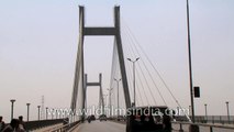 Holy River Yamuna (the main tributary of river Ganges) separates Allahabad from its satellite town Naini. Earlier the city was connected with Naini by an old rail/road bridge. It was felt that this bridge will not be able to cater the needs of ever increasing traffic between two sides of the river. Moreover, the development of Naini as industrial town has also created traffic pressure on then existing bridge. Keeping this in view and the future requirements of national waterway, traffic plying between Kolkata & Allahabad and the aesthetics of the holy Sangam city where pilgrims from all over the world come to have a holy dip, a concrete cable stayed four laned road bridge was constructed. NHAI (National Highway Authority of India) has constructed this bridge at the cost of 300 crores. Total length of the bridge is 1510mts & width 26mts. The bridge connects old GT Road (NH-2) at Allahabad end & NH-27 towards Naini side. This bridge has added a new attraction point to Allahabad city & is worth watching during the night.