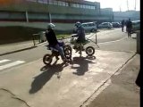 Petite roue arrière en moto qui va vite mal tourner