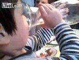 Mother forcing her child to eat