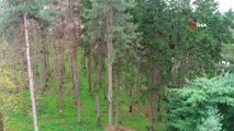 Atatürk Köşkü Ormanı’nda 12 dişli çam kabuk böceğinin kuruttuğu ağaçların kesimlerine başlandı...Atatürk Köşkü Ormanı havadan görüntülendi