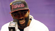 Minnesota Vikings quarterback Matt Cassel is intercepted by New England Patriots cornerback Darrelle Revis