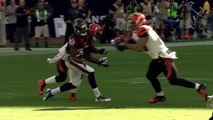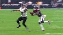 Oakland Raiders rookie quarterback Derek Carr is picked off by Houston Texans defensive back Kareem Jackson.
