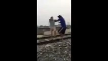 Heart-pounding video captures moment cop stops distraught woman from leaping off bridge the day after Christmas