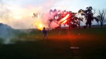 Des individus tentent d'allumer un feu de camp avec un bazooka artisanal et un feu d'artifice. Mission réussie i