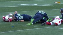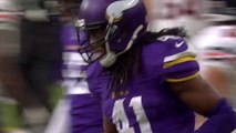 Carolina Panthers quarterback Cam Newton is stripped of the ball by Chicago Bears defensive end Willie Young, who also recovers the fumble.