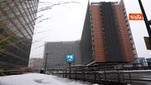 Neve a Bruxelles, ecco Palazzo Berlaymont, sede della Commissione Ue, imbiancato