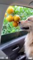 Dog snatching orange