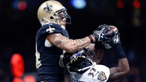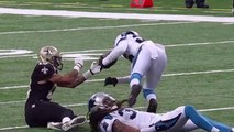 New Orleans Saints quarterback Drew Brees throws a 46-yard touchdown pass to wide receiver Kenny Stills.