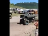 monster truck jump into mud