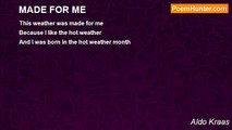 I was not made for this world Because I am kind And I am living in the world that is not And at the same time I find that the people in this world are not kind At allAldo Kraashttp://www.poemhunter.com/poem/i-was-not-made-tor-this-world/
