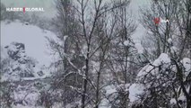 Karlı havada yiyecek arayan yaban domuzu görüntülendi
