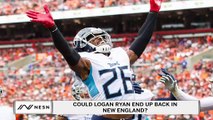 New England Patriots cornerback Logan Ryan intercepts a pass from Detroit Lions quarterback Matthew Stafford -- and then attempts to lateral the ball to a teammate.