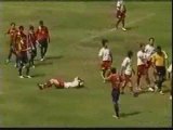 C'est une scène incroyable qui s'est déroulé à l'issue du match de Première Division Péruvienne entre l'Union Comercio et Alianza Lima. Après s'etre vu refusé un but à la dernière minute, les joueurs visiteurs s'en sont pris à l'arbitre et à ses assistants. Les forces de l'ordre ont du intervenir pour éviter tout débordement.
