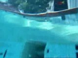 Le lendemain d'une fête bien arrosée, un homme va nager dans la piscine quand il recoit un appel sur ton téléphone portable.