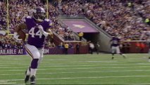 New York Jets wide receiver Chris Owusu catches a 7-yard pass that goes off of his facemask and lands in his lap as he falls to the ground.