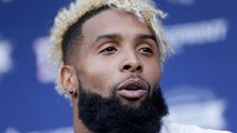 New York Giants wide receiver Odell Beckham practices one-handed catches out of the passing machine and makes them look easy.
