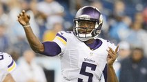 Minnesota Vikings quarterback Teddy Bridgewater is intercepted by Derrick Shelby who returns for 2 yards.