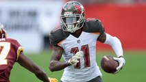Tampa Bay Buccaneers wide receiver DeSean Jackson strips possible interception and turns it into a Tampa Bay completion