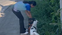 This little girl is somehow able to control a huge group of pit bull dogs! While she preps their dinner, the dogs wait patiently for her command...