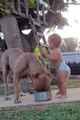 Baby Feeding A Huge Pitbull
