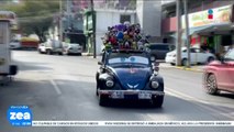 Manuel Sánchez roba cientos de miradas por transitar con un vochito lleno de peluches
