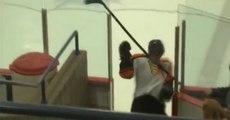 Hockey player FAIL : Mitchell Skiba clotheslines himself with own stick
