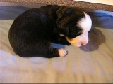 dans la caisse mise-bas, la femelle rouge, dans le parc, le mâle orange (25 fév)