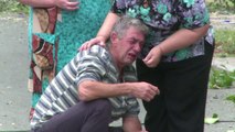 Two men in civilian clothes standing with their faces against the wall inside of a unknown building. The man with a moustache is from Russia and is one of the early insurgence leaders in Donetsk. He orders two masked gunmen to execute the civilians by shooting them in the back.