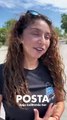 Una mujer regalo abrazos este domingo en San José