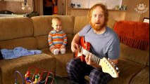 Baby playing guitar like a real rock star